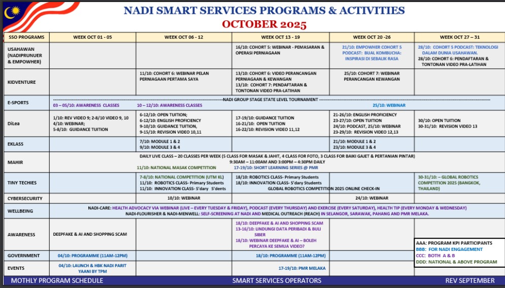 | 9 April 2026 | Webinar NADI x Cybersecurity Lifelong Learning seperti ketetapan |